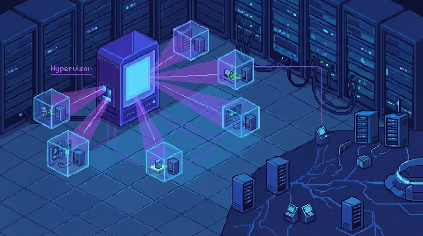 La virtualisation serveur, c'est ce qui existait avant les conteneurs et qui continue d'exister parce que parfois, tu as besoin de vraies VM. Elle permet de faire fonctionner plusieurs machines virtuelles (VM) sur un même serveur physique, isolant les environnements et optimisant l'utilisation des ressources matérielles. Les hyperviseurs sont les composants logiciels qui gèrent cette virtualisation, créant une couche d'abstraction entre le matériel physique et les systèmes d'exploitation invités. Parce que parfois, tu as besoin d'un OS complet, pas juste d'un conteneur.